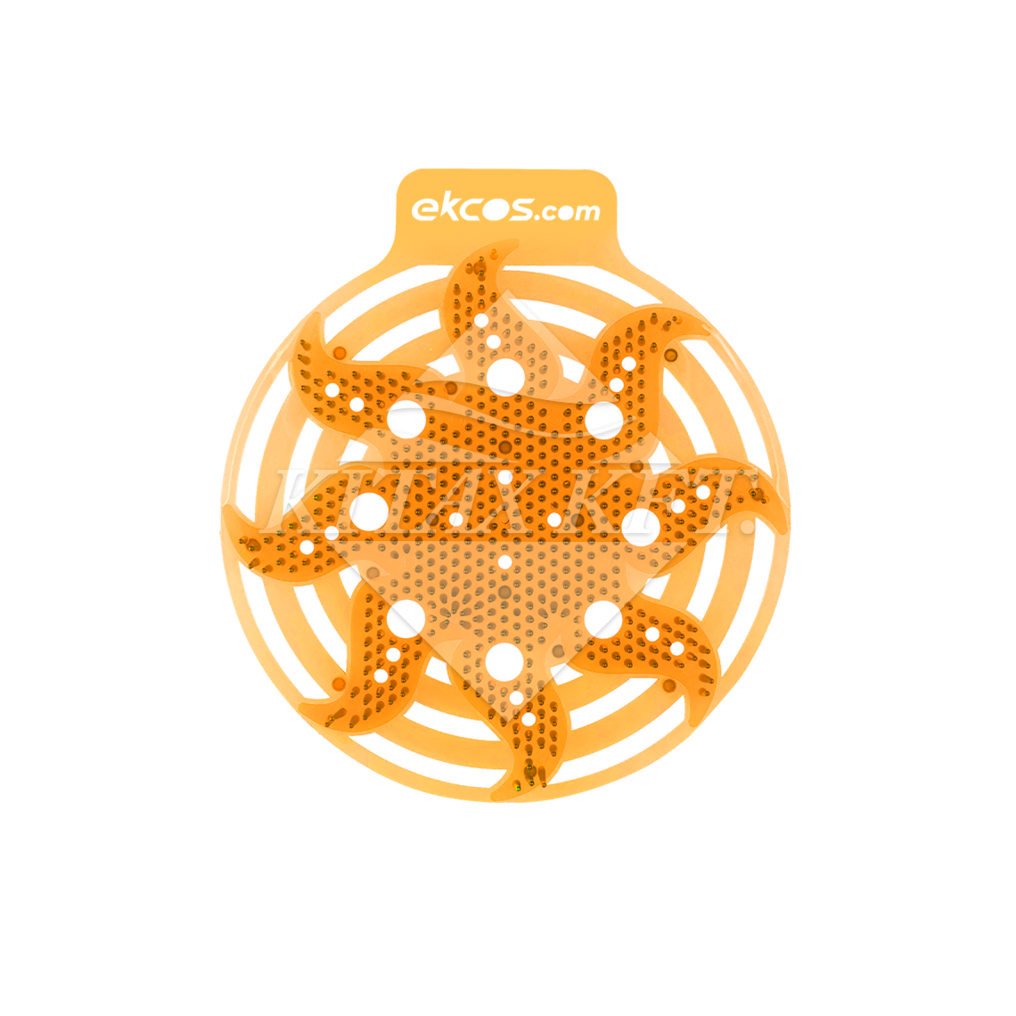 30 napig fejti ki hatását. Környezetbarát. Jótékony baktériumokat bocsát ki, melyek megszűntetik a szagokat a piszoárban. Egyedi kialakítása, átlátszó és rugalmas formája biztosítja a lefolyó láthatóságát. A tetején elhelyezkedő kitüremkedések és lyukacsos felszíne csökkenti a vizelet kifröccsenését. Rugalmas anyagának köszönhetően minden pisszoártípushoz alkalmazható. Vízmentes piszoárokban is ugyanazt a hatást fejti ki. Mérete: 19,00 × 20,30 × 1,90 cm. Súly: 65 g. Szín: Narancssárga. Illat: Trópusi gyümölcs